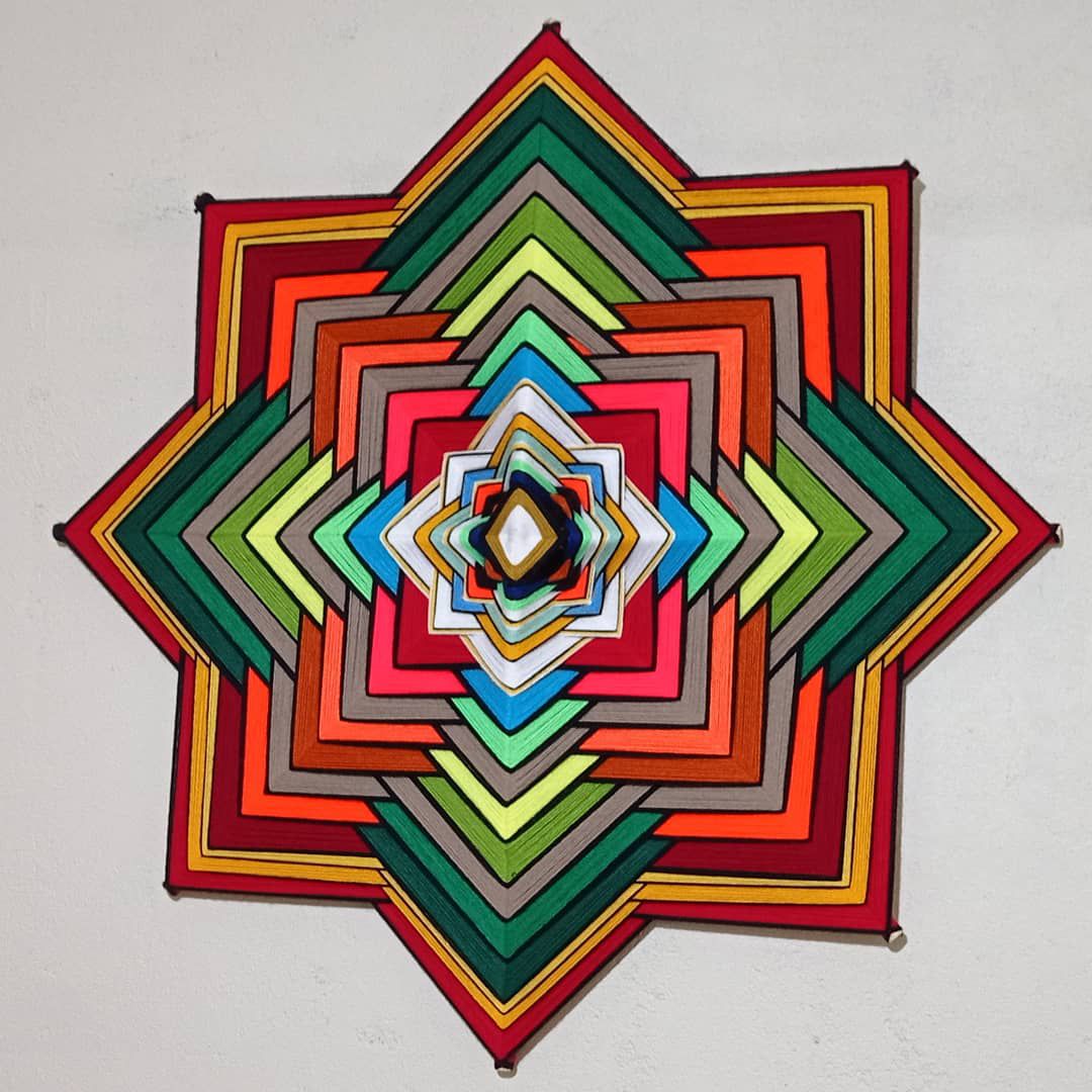 Mandala de lã cores vivas em 1 metro de diâmetro